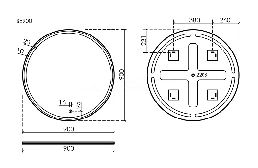 - Дополнительное оснащение зеркала: регулируемая подсветка / подвесы.