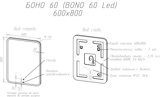 Зеркало Sintesi Bono 60x80 - арт. SIN-SPEC-BONO-60.