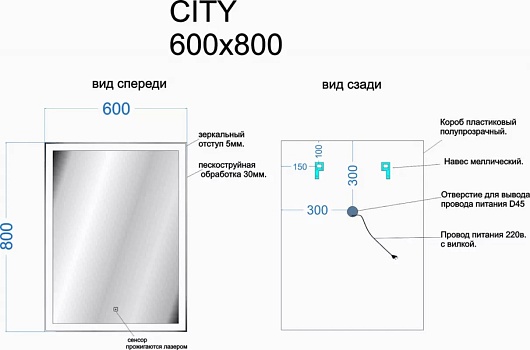 - Дополнительное оснащение зеркала: регулируемая подсветка / подвесы.