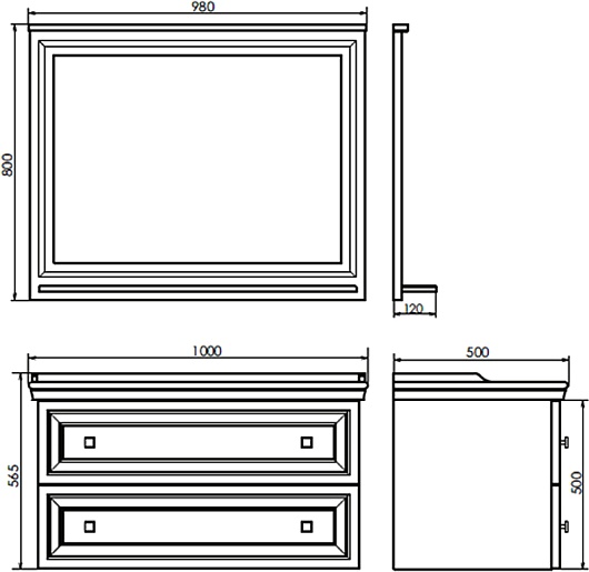 - Размер (ШxВxГ): 980x800x120 мм.