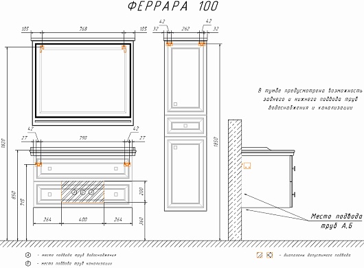 - Материал корпуса/фасада: ЛДСП / МДФ, зеркало.