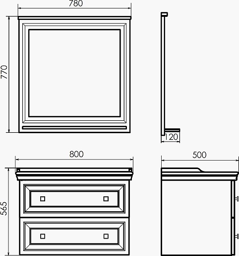 - Размер (ШxВxГ): 780x770x120 мм.