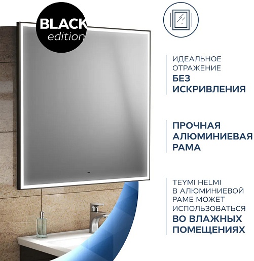 Зеркало Teymi Helmi Black Edition 80x80 Led с сенсором на взмах - арт. T20305IR.