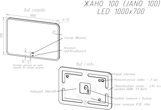 - Размер (ШxВxГ): 1000x700x25 мм.
