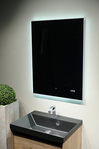 - Зеркало оснащено датчиком включения на взмах, встроенными часами и логотипом бренда Raval с подсветкой.