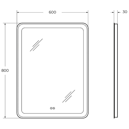 Оснащение: встроенная светодиодная подсветка по периметру, два сенсорных выключателя с диммером (регулировкой).