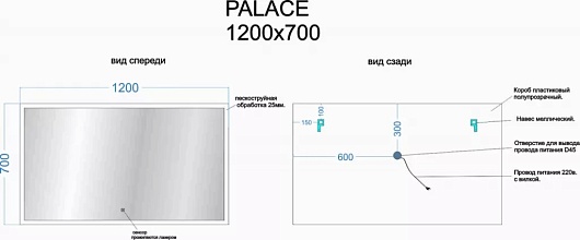 - Дополнительное оснащение зеркала: регулируемая подсветка / подвесы.