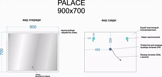 - Дополнительное оснащение зеркала: регулируемая подсветка / подвесы.