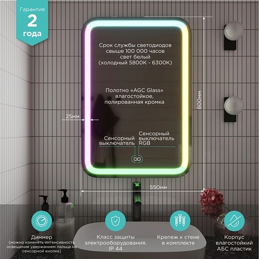 Зеркало Mixline Премьер Мальта RGB 55 - арт. 550382.