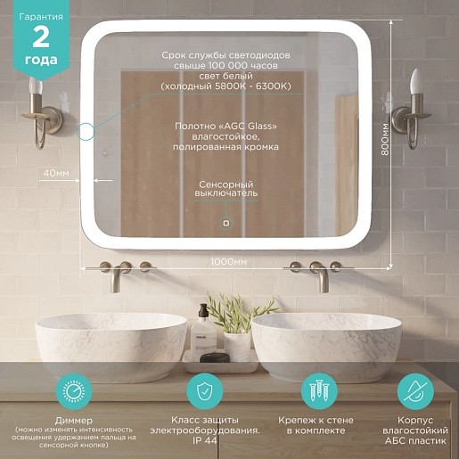 - Размер (ШxВxГ): 1000x800x29 мм.