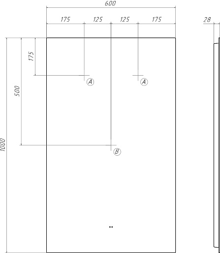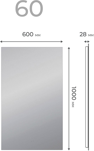 - Размер (ШxВxГ): 600x1000x28 мм.