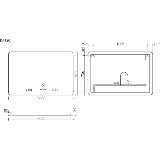 Sancos Зеркало Ray 120/80 c подсветкой RA1200