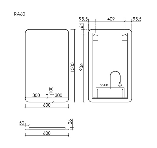 Sancos Зеркало Ray 60/100 c подсветкой RA600