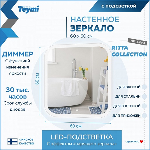 Teymi Зеркало Ritta 60/60 LED сенсор T20247