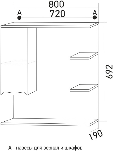 - Размер (ШxВxГ): 800x692x190 мм.