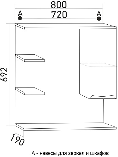 Зеркало-шкаф Mixline Этьен 80 R - арт. 540869.