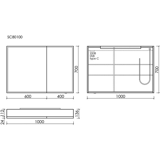 Sancos Зеркало-шкаф Evoke 100 с LED подсветкой SC80100