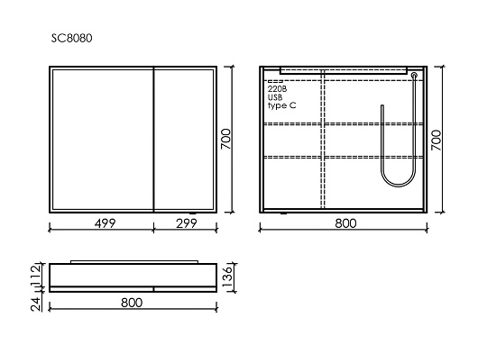 Sancos Зеркало-шкаф Evoke 80 с LED подсветкой SC8080
