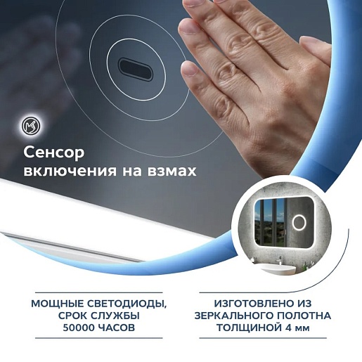 Teymi Зеркало Solli 100x70 Led с сенсором на взмах и увеличительным зеркальцем