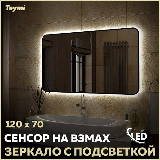 Teymi Зеркало Solli Black Soft Line 120/70 LED сенсор на взмах T20230S