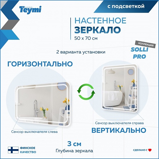 Teymi Зеркало Solli Pro 50/70 LED сенсор T20252