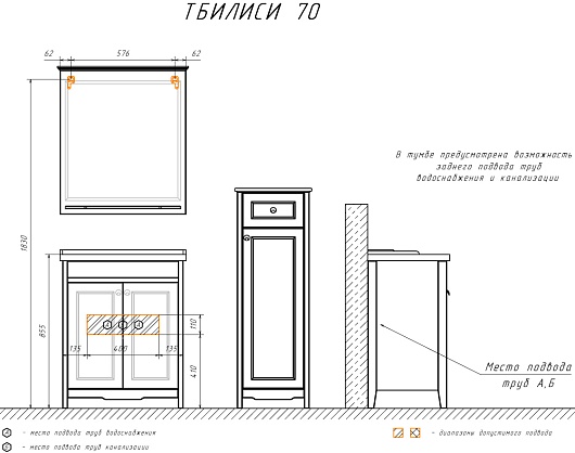 - Материал корпуса/фасада: МДФ / МДФ, зеркало.