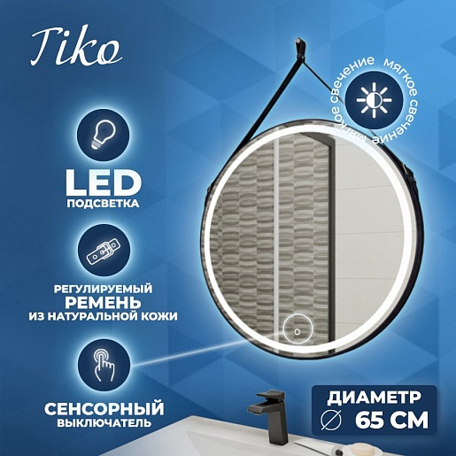 Teymi Зеркало Tiko D65 LED сенсор чёрный кожаный ремень T20903S
