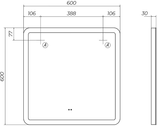 - Размер (ШxВxГ): 600x600x30 мм.