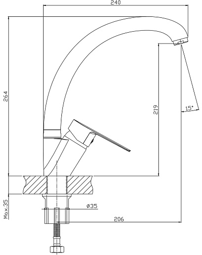 Высота излива, мм: