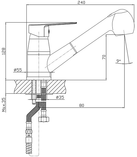 - подводка для шланга нержавеющая сталь, гибкая, 21 см.