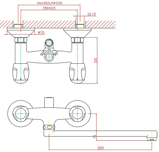 Длина излива, мм: