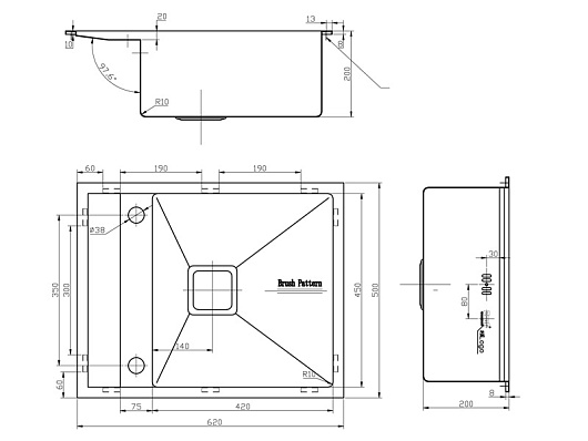 - готовых отверстий для смесителя: 2