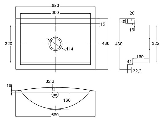 - готовых отверстий для смесителя: нет