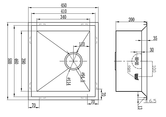 Диаметр слива: