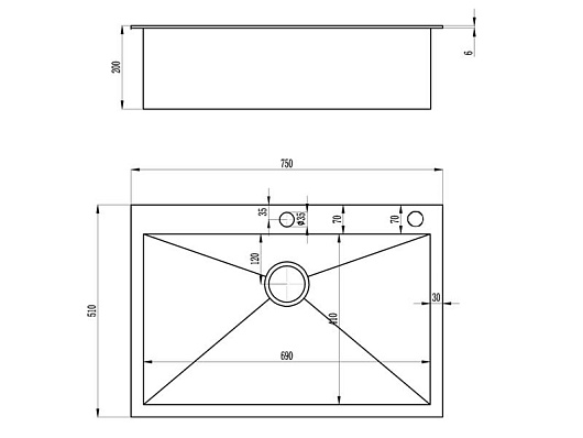 - готовых отверстий для смесителя: 2