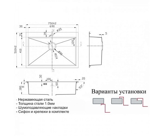 Zorg Кухонная мойка Steel Hammer SH X 7551 KANTOS