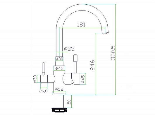 - имеет стабилизирующую пластину для установки на мойках из нержавеющей стали